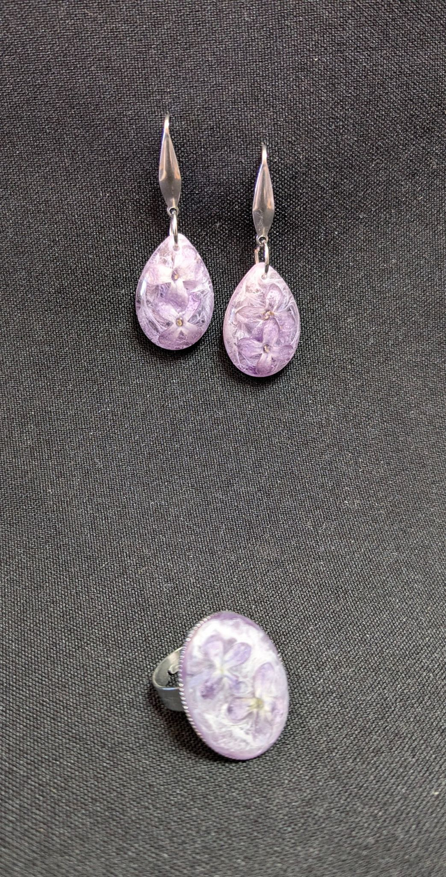 Découvrez notre magnifique parure composée d’une bague et de boucles d’oreilles, alliant l’élégance intemporelle de l’acier inoxydable à la délicatesse des fleurs de lilas de mon jardin, encapsulées dans de la résine. Un véritable bijou qui saura apporter une touche de couleur et de sophistication à toutes vos tenues.